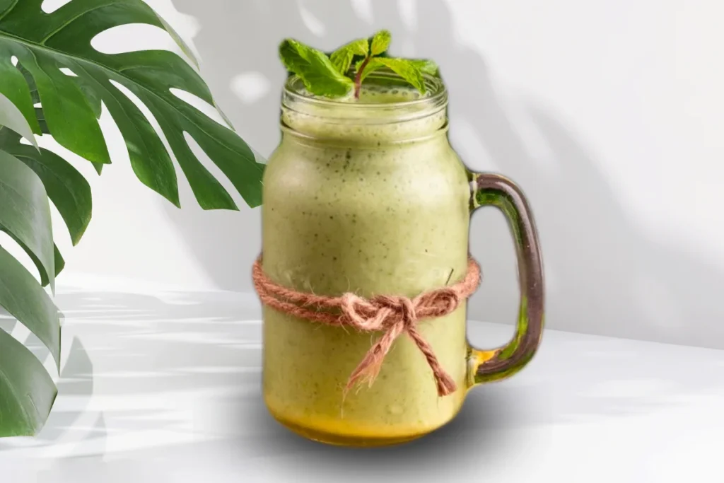 Avocado, banana, green apple, kale, spinach, ginger, low-fat milk.