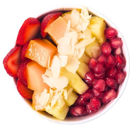 Your choice of base topped with orange blossom water, mix fruits, almond flakes and pomegranate.