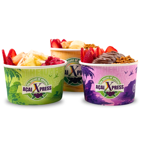 Choose your Organic Acai (PURE or Blended) or Frozen Yogurt as a base and enjoy these combinations created exclusively by AcaiXpress.